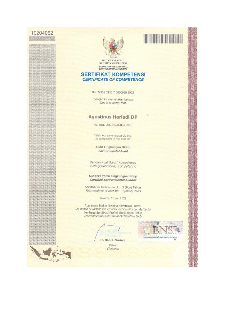 • Ketua Tim Audit: Dr. Ir. Agustinus Hariadi Djoko Purwanto, MSc (LHK.642.00038 2019)