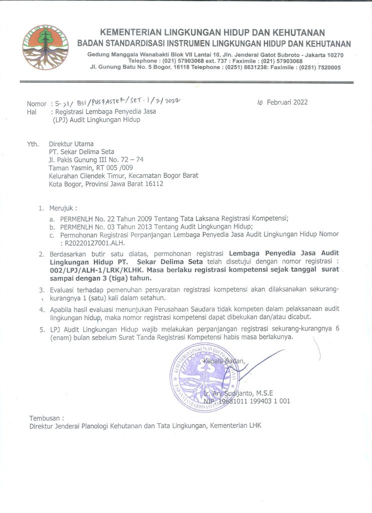 • Auditor: Puji Kartini S.Si. MSi (LHK.642.00064.2019)